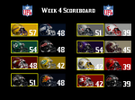 In Week 4 the UFL teams went Head2Head in the Last Non-Conference games of the season which started Thursday night and ran through Sunday afternoon.Week 4 brought us to the Last Non-Conference Games of the season and Week 4 goes to the AFC (5-3).Neither side won the battle this year as it will go down as a tie 1-1-2 overall. AFC leads All-Time Regular Season Series 57-45.The Bombers easily hand the Giants it's 1st lose of the season winning by 9 points. The Freemen easily hand the Executioners it's 1st lose of the season winning by 12 points.The Bad Boys pick up their 1st win of the season against the StormDevils. The Roughriders pick up their 1st win of the season against the Renegades.The Voodoo improve to 3-1 for the 1st time in team history as they def. Panthers by 9 points. The Bruins calmed & ended the Dragons 2 game winning streak in Week 4.For the 4th week in a row we have a thrilling overtime game. The Storm pick up the overtime win over the Fire to start 2-2 for the 1st time in team history. Full Week 4: Results